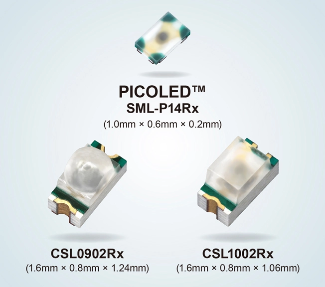 ROHM's ultra-small, ultra-thin chip LEDs designed for compact mobile devices and wearables, developed using a proprietary element manufacturing process.